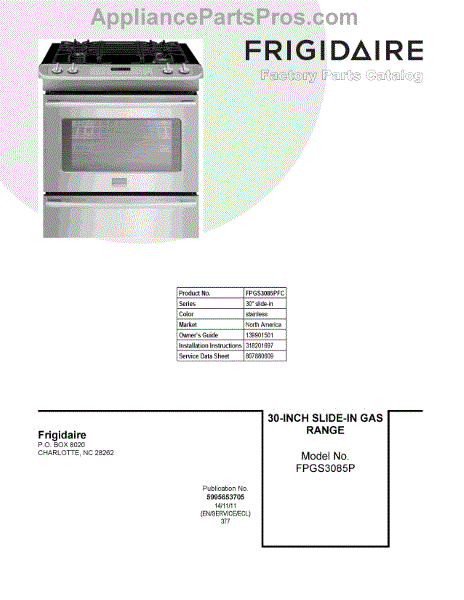 Parts for Electrolux FPGS3085PFC: 01 - Cover Sheet Parts