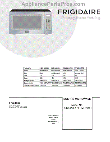 Parts for Electrolux FPMO209RFB: 01 - Cover Sheet Parts