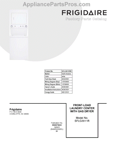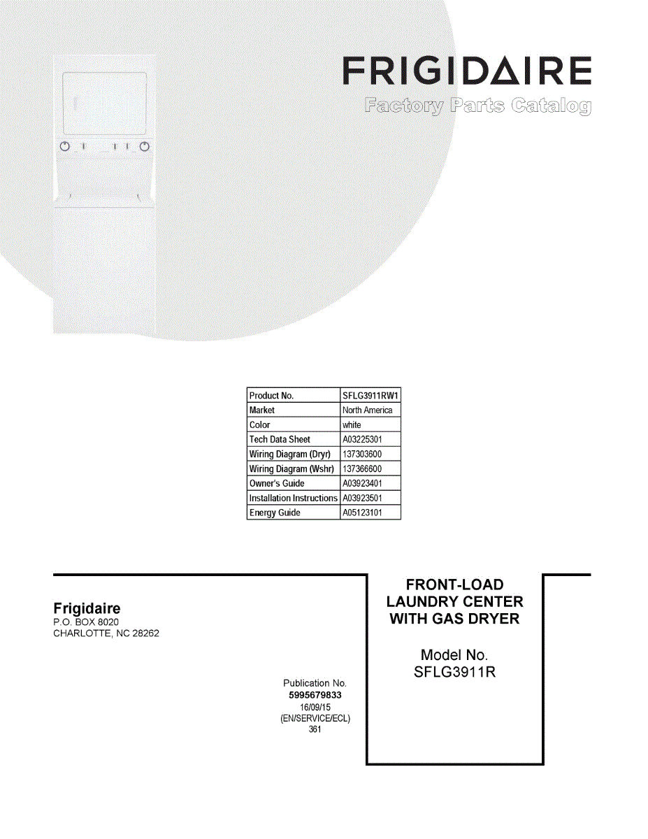 Parts for Electrolux SFLG3911RW1: 01 - Cover Sheet Parts