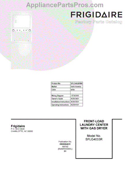 Parts for Electrolux SFLG4033RW0: 01 - Cover Sheet Parts