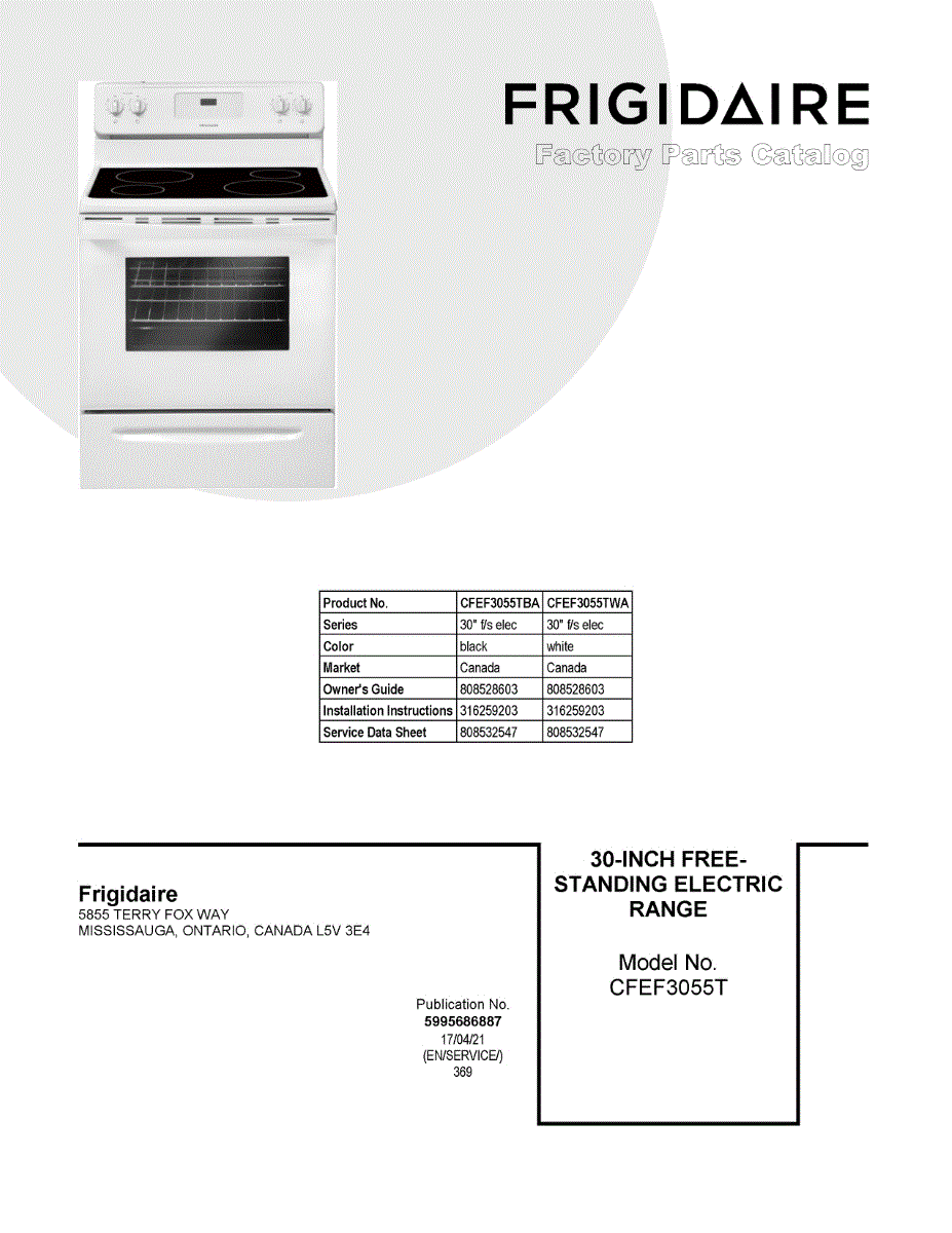Parts for Frigidaire CFEF3055TBA: 01 - Cover Sheet Parts