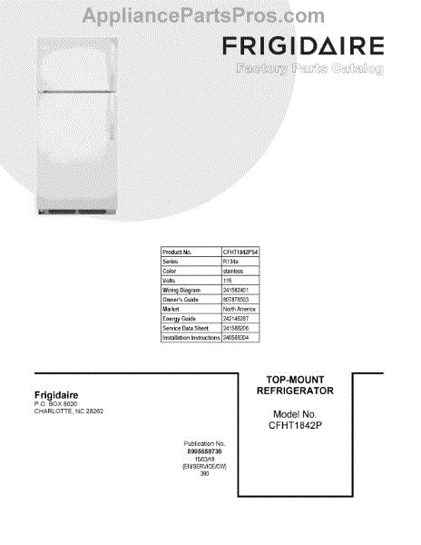 Parts for Frigidaire CFHT1842PS4: 01 - Cover Sheet Parts