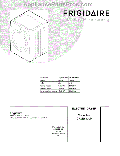 Parts for Frigidaire CFQE5100PW1: 01 - Cover Sheet Parts