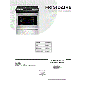 Parts for Frigidaire CGDS3065PFN: 01 - Cover Sheet Parts