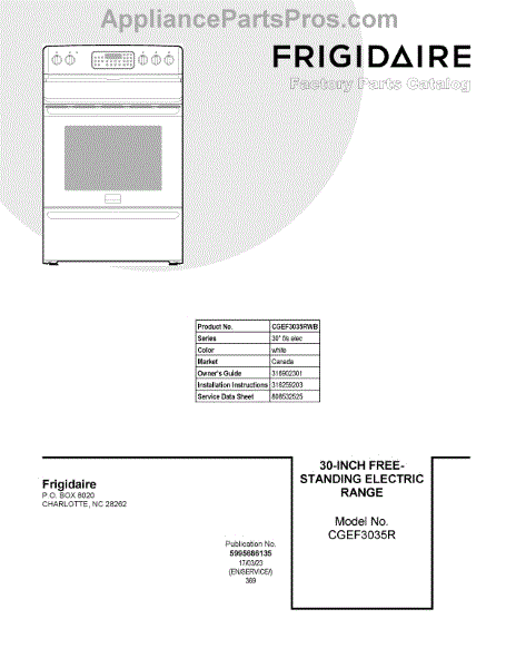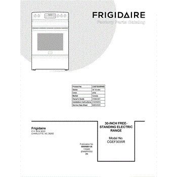 Parts for Frigidaire CGEF3035RWB: 01 - Cover Sheet Parts