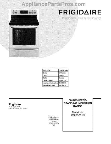 Parts for Frigidaire CGIF3061NFE: 01 - Cover Sheet Parts