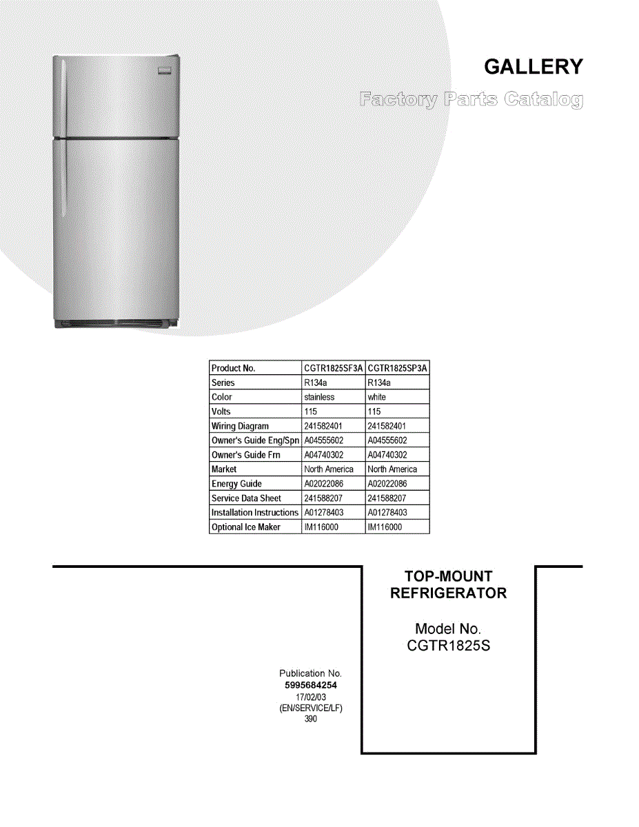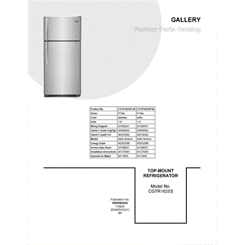 Parts for Frigidaire CGTR1825SF3A: 01 - Cover Sheet Parts
