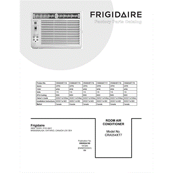 Parts for Frigidaire CRA054XT715: 01 - Cover Sheet Parts