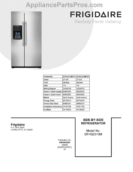 Parts for Frigidaire DFHS2313MFHA: 01 - Cover Sheet Parts