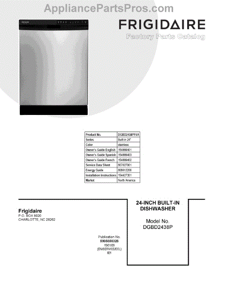 Parts for Frigidaire DGBD2438PF5A: 01 - Cover Sheet Parts