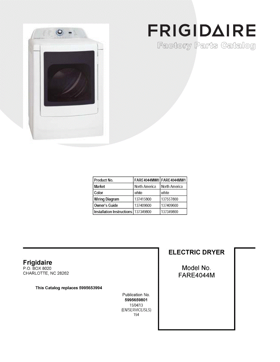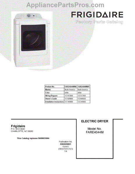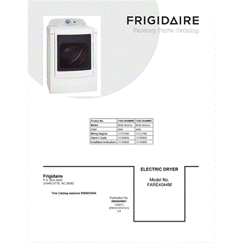 Parts for Frigidaire FARE4044MW1: 01 - Cover Sheet Parts