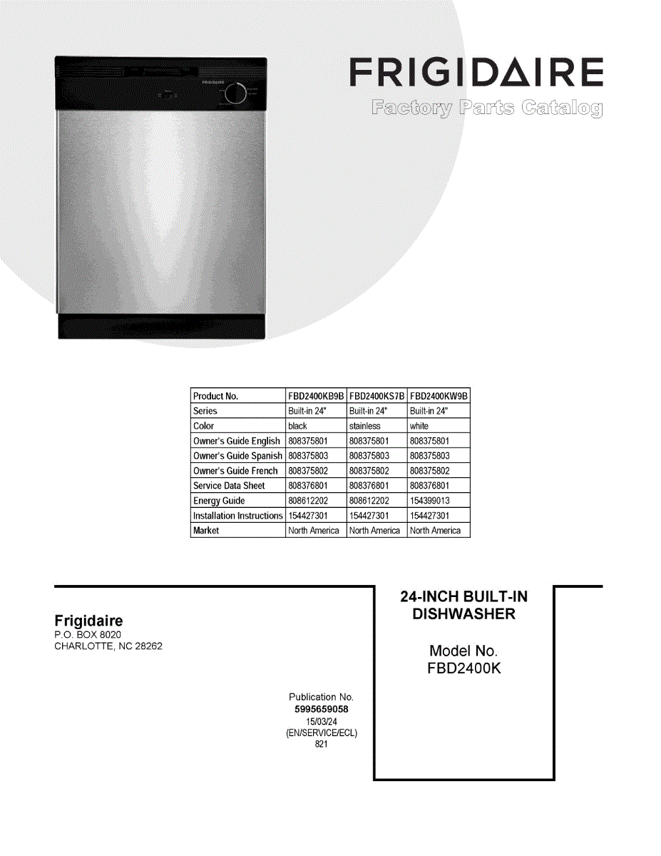 Parts for Frigidaire FBD2400KB9B: 01 - Cover Sheet Parts