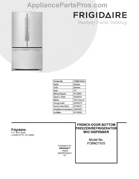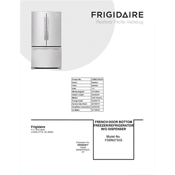 Parts for Frigidaire FDBN2750SS4: 01 - Cover Sheet Parts