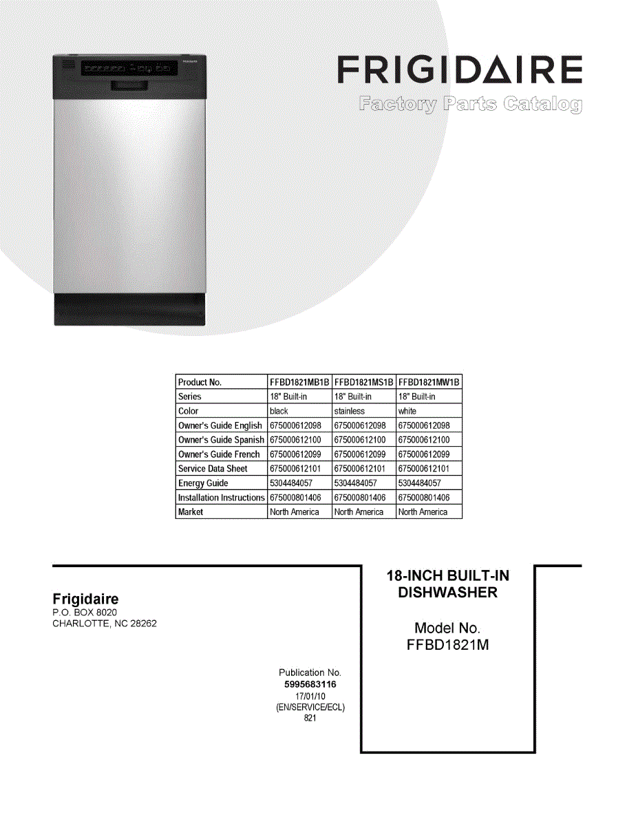 Parts for Frigidaire FFBD1821MS1B: 01 - Cover Sheet Parts