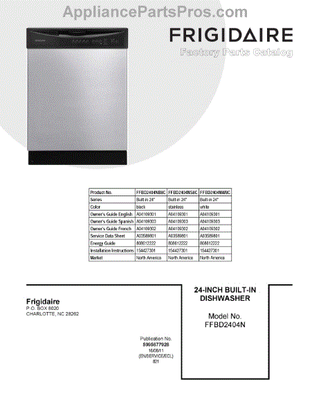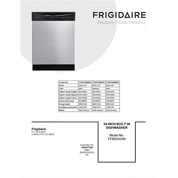 Parts for Frigidaire FFBD2404NS8C: 01 - Cover Sheet Parts