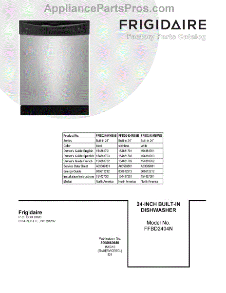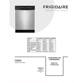 Parts for Frigidaire FFBD2404NW5B: 01 - Cover Sheet Parts