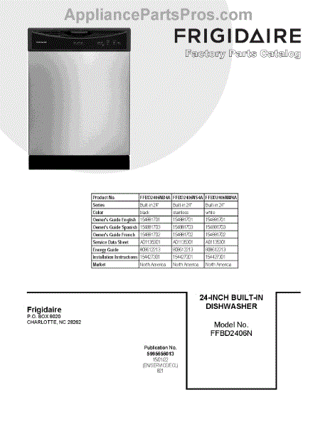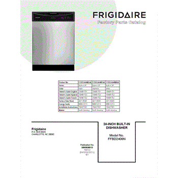 Parts for Frigidaire FFBD2406NW4A: 01 - Cover Sheet Parts