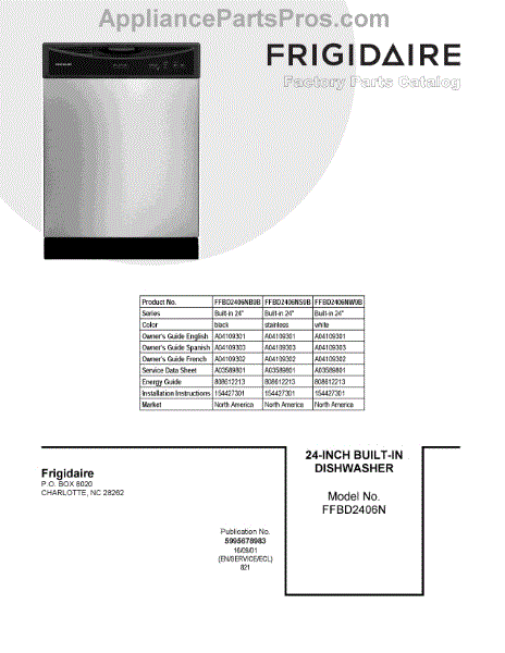 Parts for Frigidaire FFBD2406NW9B: 01 - Cover Sheet Parts