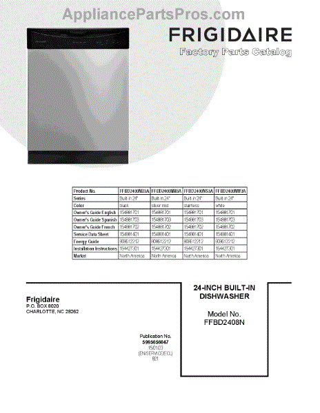 Parts for Frigidaire FFBD2408NB3A: 01 - Cover Sheet Parts