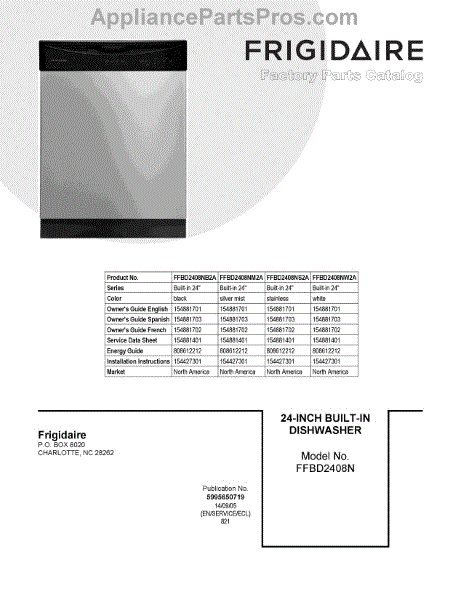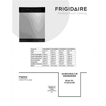 Parts for Frigidaire FFBD2408NM2A: 01 - Cover Sheet Parts