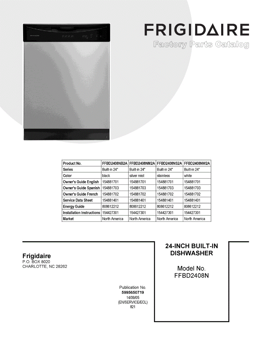 Parts for Frigidaire FFBD2408NS2A: 01 - Cover Sheet Parts