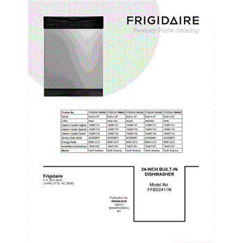 Parts for Frigidaire FFBD2411NB6B: 01 - Cover Sheet Parts
