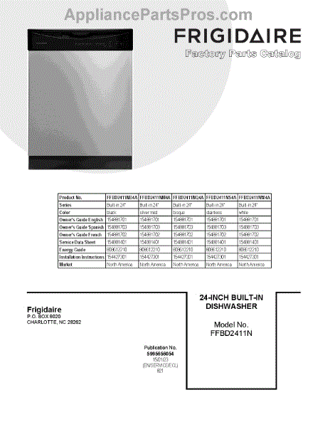 Parts for Frigidaire FFBD2411NM4A: 01 - Cover Sheet Parts