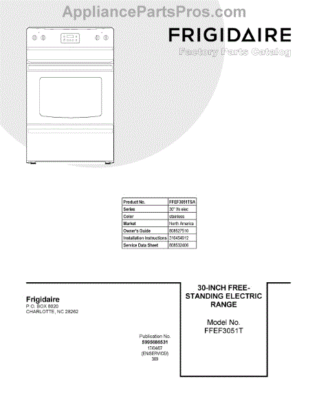 Parts for Frigidaire FFEF3051TSA: 01 - Cover Sheet Parts