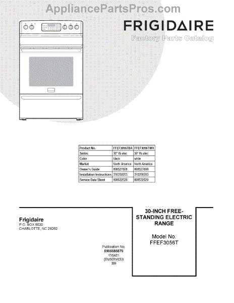 Parts for Frigidaire FFEF3056TBA: 01 - Cover Sheet Parts