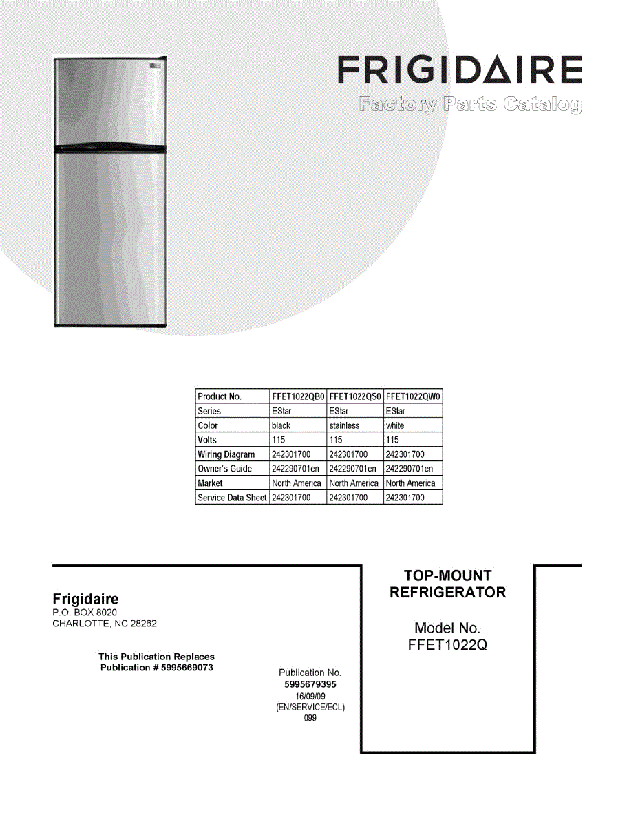 Parts for Frigidaire FFET1022QW0: 01 - Cover Sheet Parts