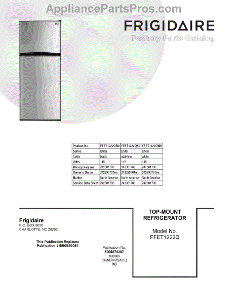 Parts for Frigidaire FFET1222QB0: 01 - Cover Sheet Parts