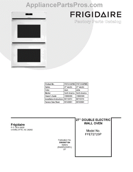 Parts for Frigidaire FFET2725PBD: 01 - Cover Sheet Parts