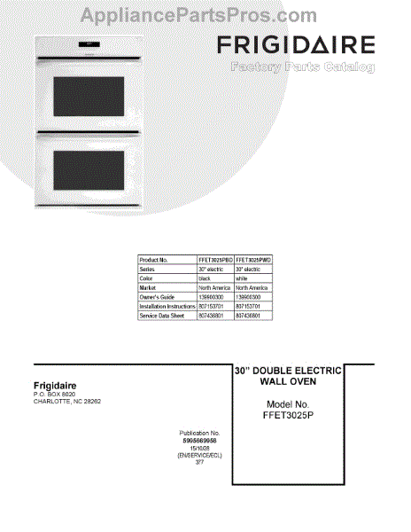 Parts for Frigidaire FFET3025PWD: 01 - Cover Sheet Parts