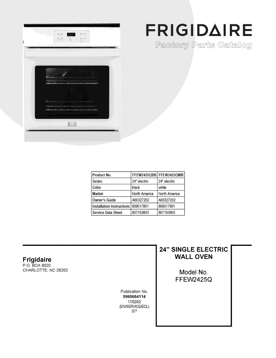 Parts for Frigidaire FFEW2425QBB: 01 - Cover Sheet Parts