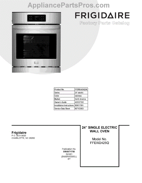 Parts for Frigidaire FFEW2425QSA: 01 - Cover Sheet Parts