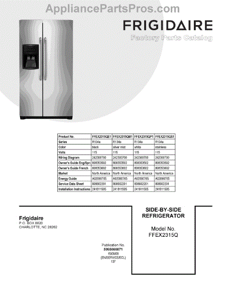 Parts for Frigidaire FFEX2315QP1: 01 - Cover Sheet Parts