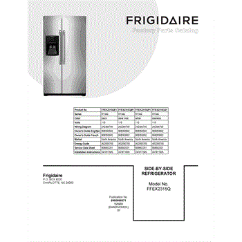 Parts for Frigidaire FFEX2315QS1: 01 - Cover Sheet Parts