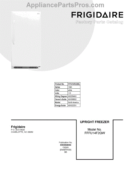Parts for Frigidaire FFFU14F2QWL: 01 - Cover Sheet Parts