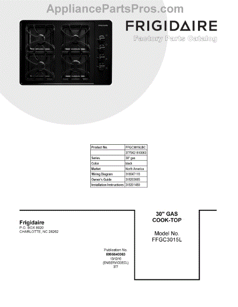 Parts for Frigidaire FFGC3015LBC: 01 - Cover Sheet Parts