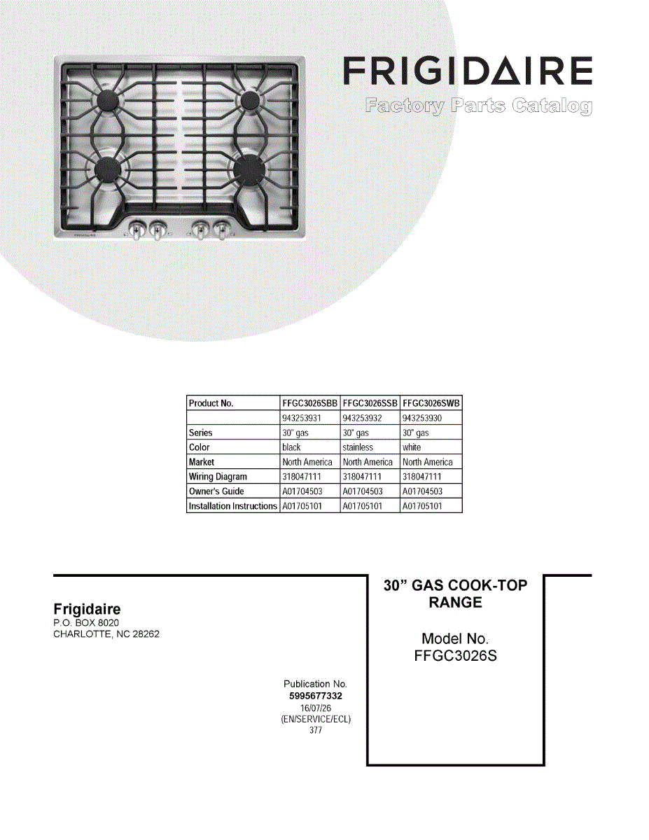 Parts for Frigidaire FFGC3026SWB: 01 - Cover Sheet Parts