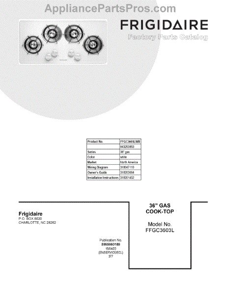 Parts for Frigidaire FFGC3603LWB: 01 - Cover Sheet Parts