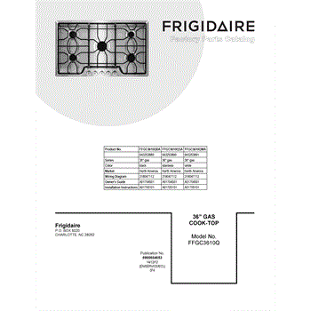 Parts for Frigidaire FFGC3610QBA: 01 - Cover Sheet Parts