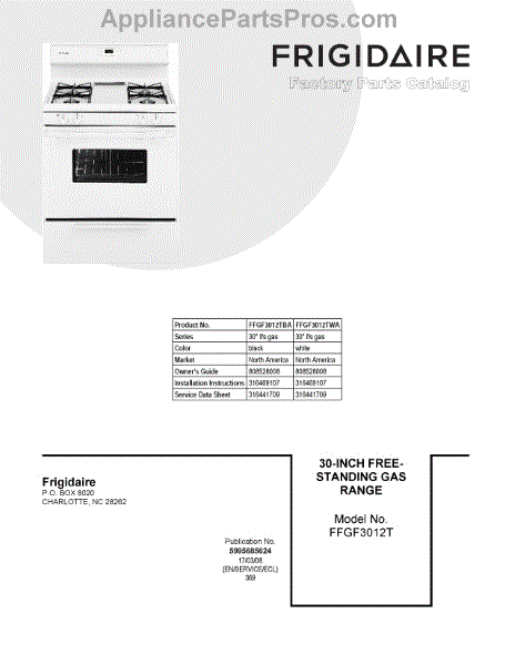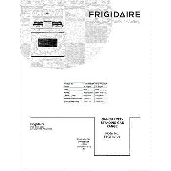 Parts for Frigidaire FFGF3012TBA: 01 - Cover Sheet Parts