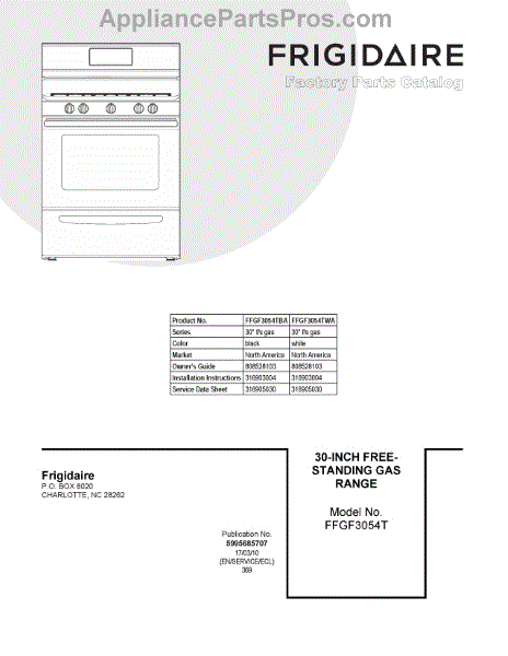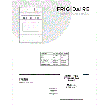Parts for Frigidaire FFGF3054TBA: 01 - Cover Sheet Parts
