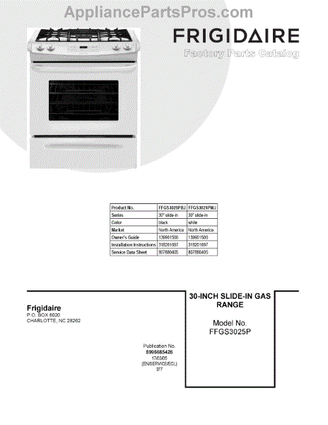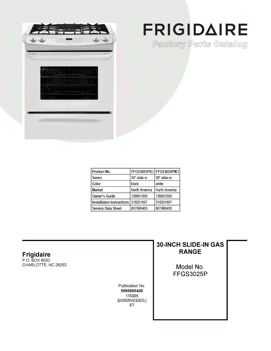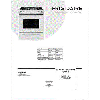 Parts for Frigidaire FFGS3025PWJ: 01 - Cover Sheet Parts