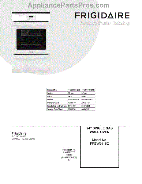 Parts for Frigidaire FFGW2415QBB: 01 - Cover Sheet Parts