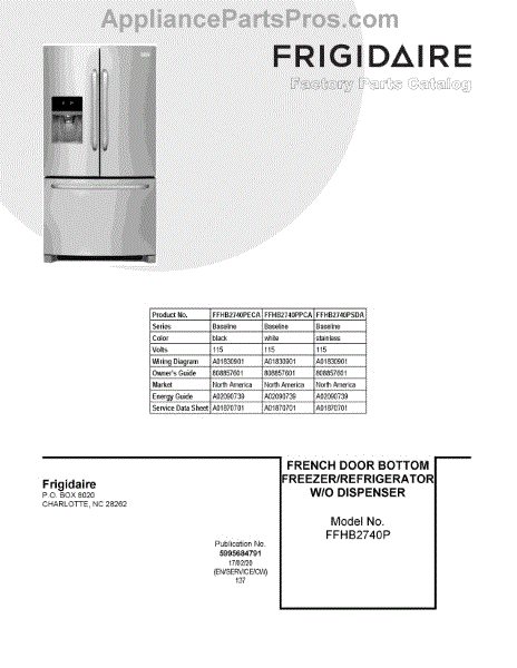 Parts for Frigidaire FFHB2740PECA: 01 - Cover Sheet Parts