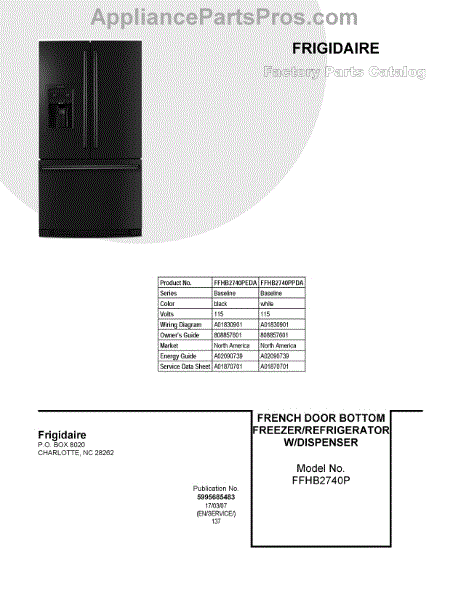 Parts for Frigidaire FFHB2740PEDA: 01 - Cover Sheet Parts
