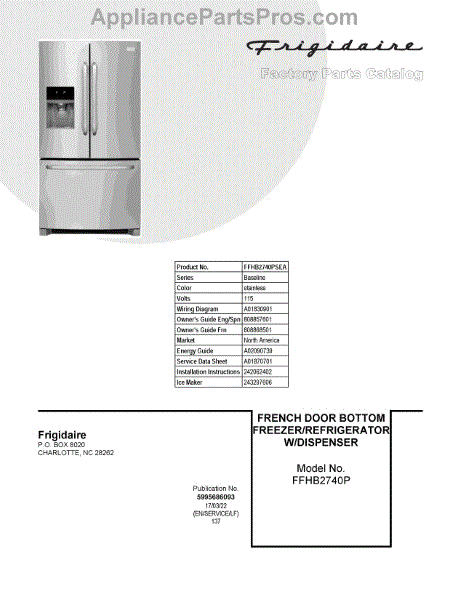 Parts for Frigidaire FFHB2740PSEA: 01 - Cover Sheet Parts