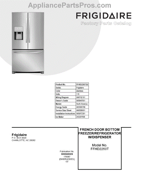 Parts for Frigidaire FFHD2250TS0: 01 - Cover Sheet Parts